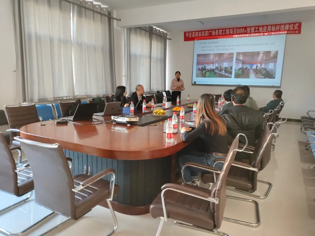 11月9日,中環市政工程有限公司聯合廣聯達科技股份有限公司舉辦了關于平莊高鐵站站前廣場景觀工程BIM+智慧工地應用標桿的授牌儀式,參與此次授牌儀式的嘉賓有:內蒙古中環市政工程有限公司總工張總、財務科負責人趙總、經營科負責人徐總、BIM中心主任張建華、BIM中心成員王曉東、芬江源,平莊項目項目經理顏鳳民,技術員葉自青、曹志龍;廣聯達內蒙分支經理蘇健、實施經理高楊、東部區銷售經理魏志堅、實施顧問王然然。